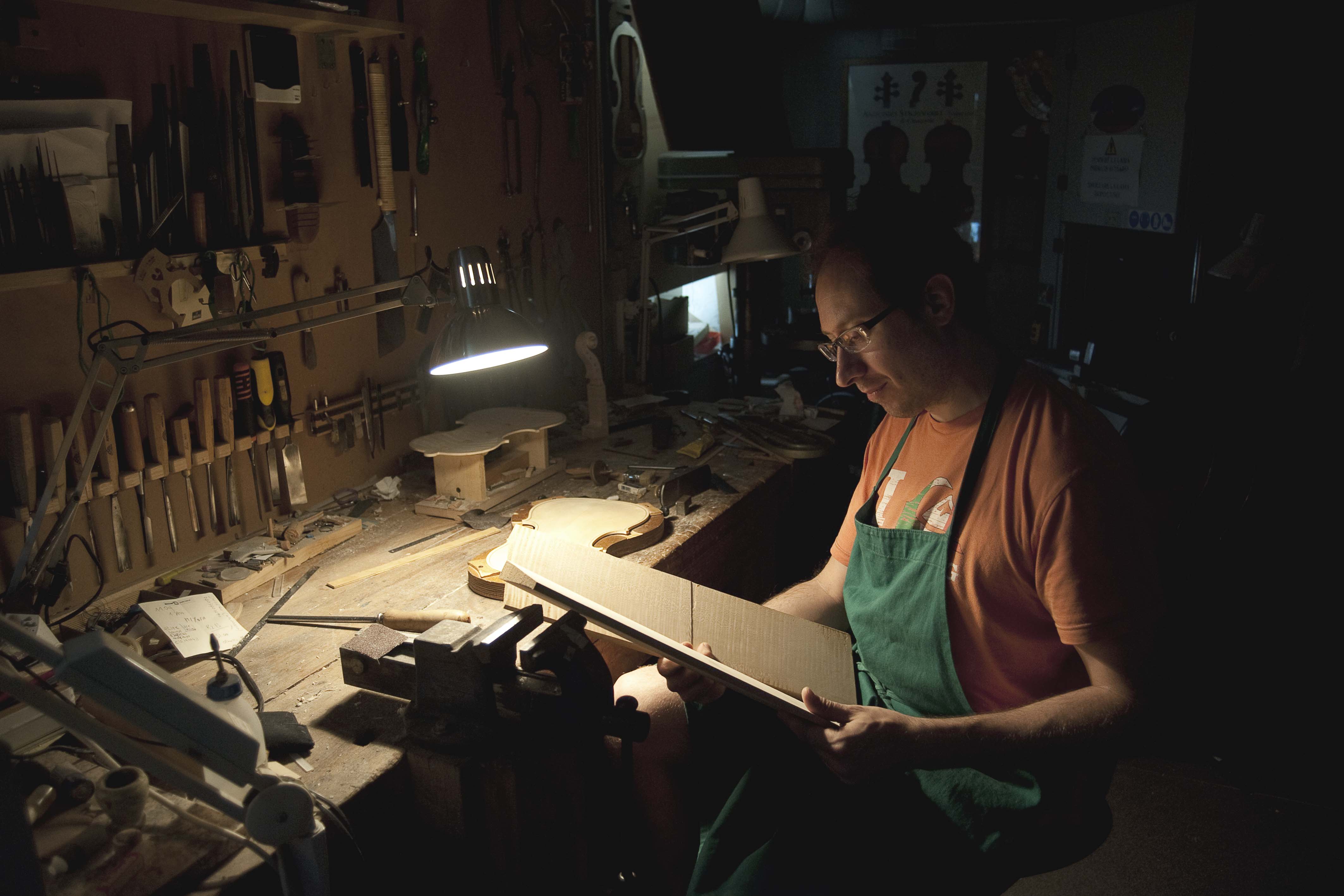 Alessandro è un liutaio affermato, appassionato e meticoloso. Nel corso degli anni, ha affinato le sue competenze attraverso un percorso di studio e sperimentazione costante. La sua passione lo ha spinto a costruire i propri utensili, fino ad arrivare alla progettazione e realizzazione di una macchina controllo numerico (CNC) per prototipare e realizzare alcune parti dei suoi strumenti e accessori.